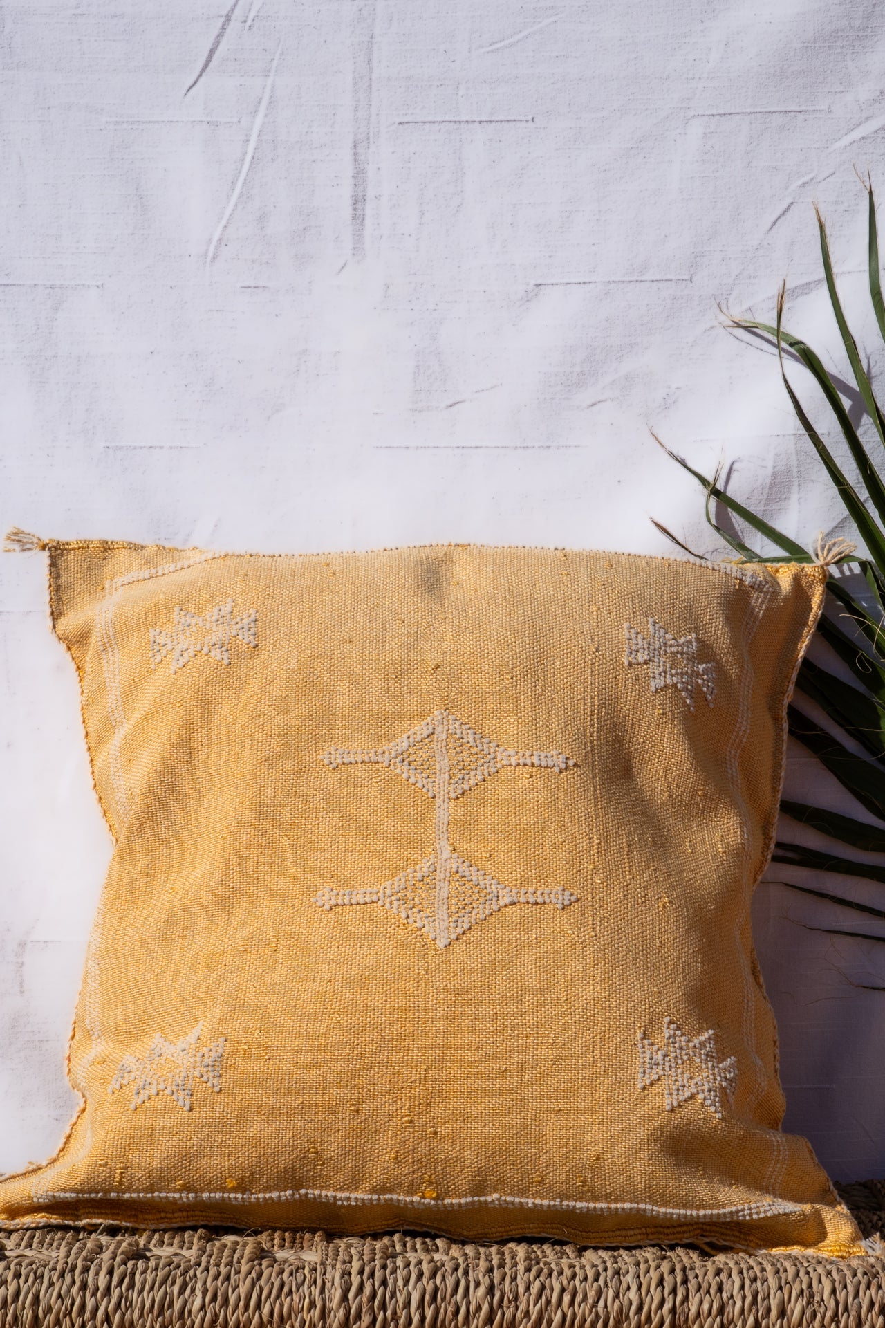 Our handmade Moroccan pillows are crafted from the natural fibers of the Sabra cactus, harvested, woven, and embroidered by local artisans. These traditional methods, passed down through generations. The different Berber motifs reflect Morocco's rich cultural heritage.