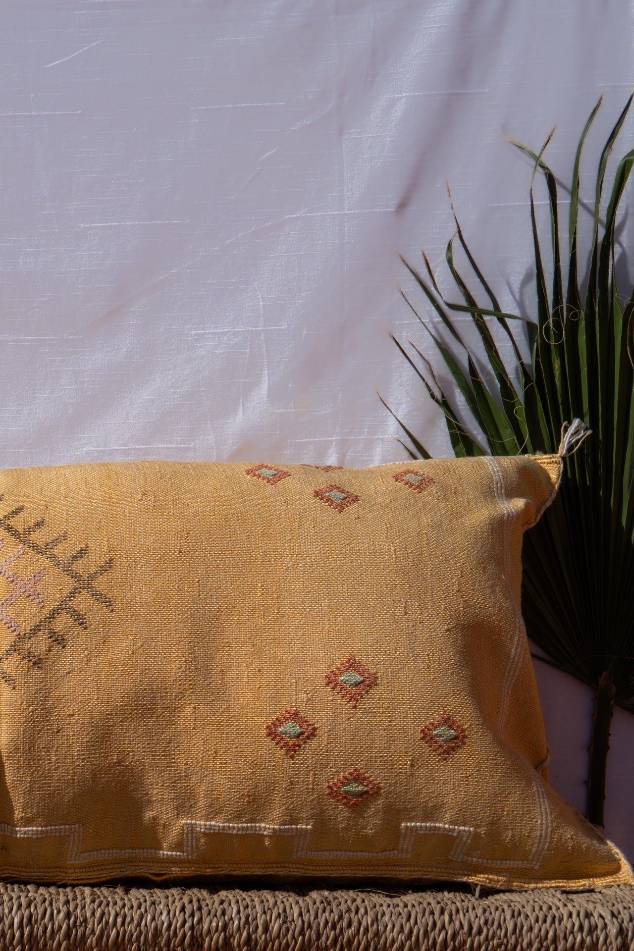 Our handmade Moroccan pillows are crafted from the natural fibers of the Sabra cactus, harvested, woven, and embroidered by local artisans. These traditional methods, passed down through generations. The different Berber motifs reflect Morocco's rich cultural heritage.